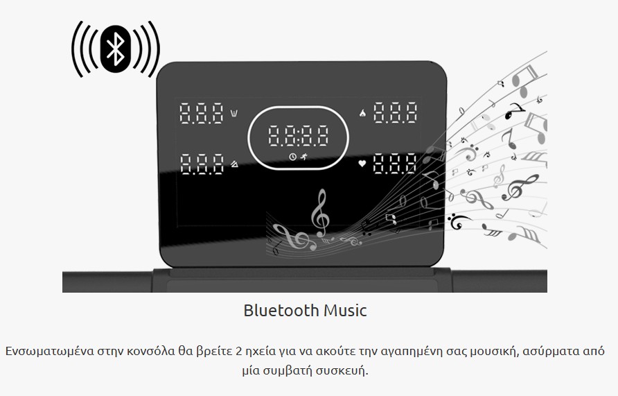 Συμβατότητα BluetoothΑφού κατεβάσετε τη δωρεάν εφαρμογή Fitshow και ενεργοποιήσετε το Bluetooth στο κινητό ή το tablet σας, ανοίξτε την εφαρμογή, δημιουργήστε ένα λογαριασμό και απλά αναζητήστε το διάδρομό σας.