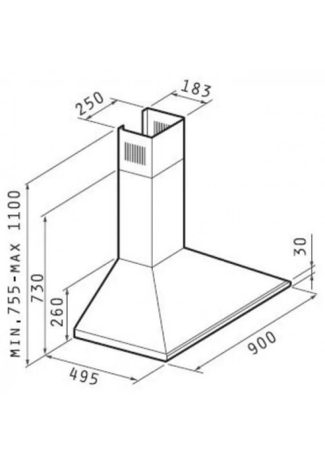 Pyramis Τετράγωνη PLUS Inox Απορροφητήρας Καμινάδα Τοίχου 90cm (065037901)