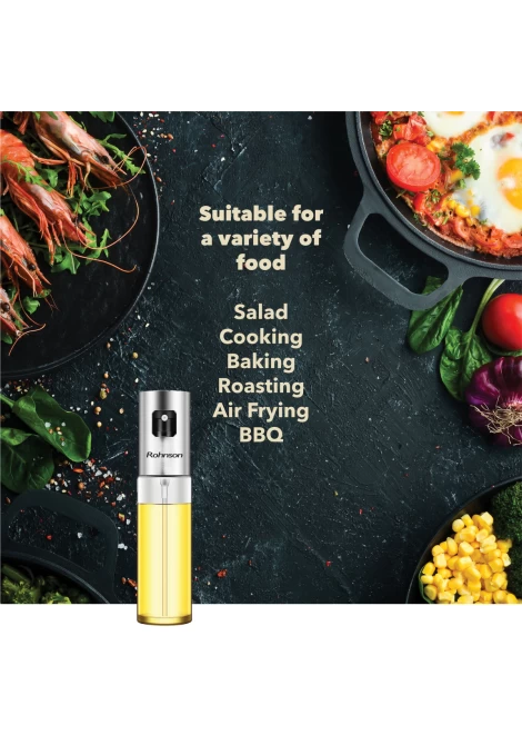 Με το νέο Σπρέι Λαδιού AF06 της Rohnson απολαμβάνετε ακόμα πιο νόστιμα φαγητά με πολύ λιγότερα λιπαρά. Κάντε έτσι τα γεύματα σας πιο ελαφριά και υγιεινά, εξοικονομώντας περισσότερες θερμίδες. Είναι επίσης ιδανικό για ντρέσινγκ και ξύδια.