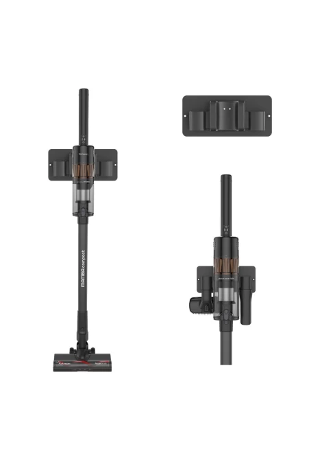 Η βάση τοποθετείται στον τοίχο, εξοικονομώντας πολύτιμο χώρο και κρατώντας τη σκούπα και τα εξαρτήματα τακτοποιημένα και εύκολα προσβάσιμα. Προσφέρει διπλή λειτουργία, συνδυάζοντας την αποθήκευση των εξαρτημάτων και τη φόρτιση της συσκευής.
