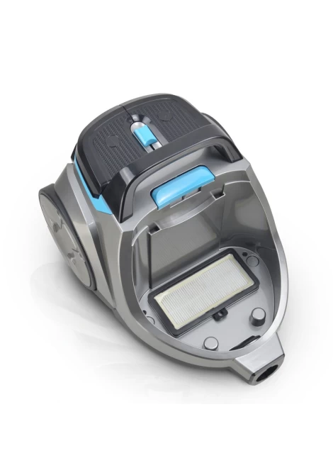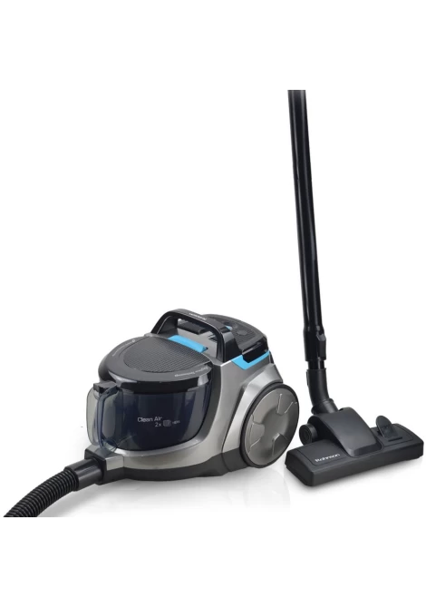 Η κυκλωνική τεχνολογία εξασφαλίζει κορυφαία απόδοση καθαρισμού με χαμηλή κατανάλωση ενέργειας. Ο αέρας διαχωρίζεται από τη σκόνη, η οποία συλλέγεται απευθείας στον κάδο, διατηρώντας την απορροφητική ισχύ σταθερή και ισχυρή καθ’ όλη τη διάρκεια χρήσης, σε αντίθεση με τις συμβατικές σκούπες με σακούλα, όπου η ισχύς μειώνεται καθώς γεμίζει η σακούλα.