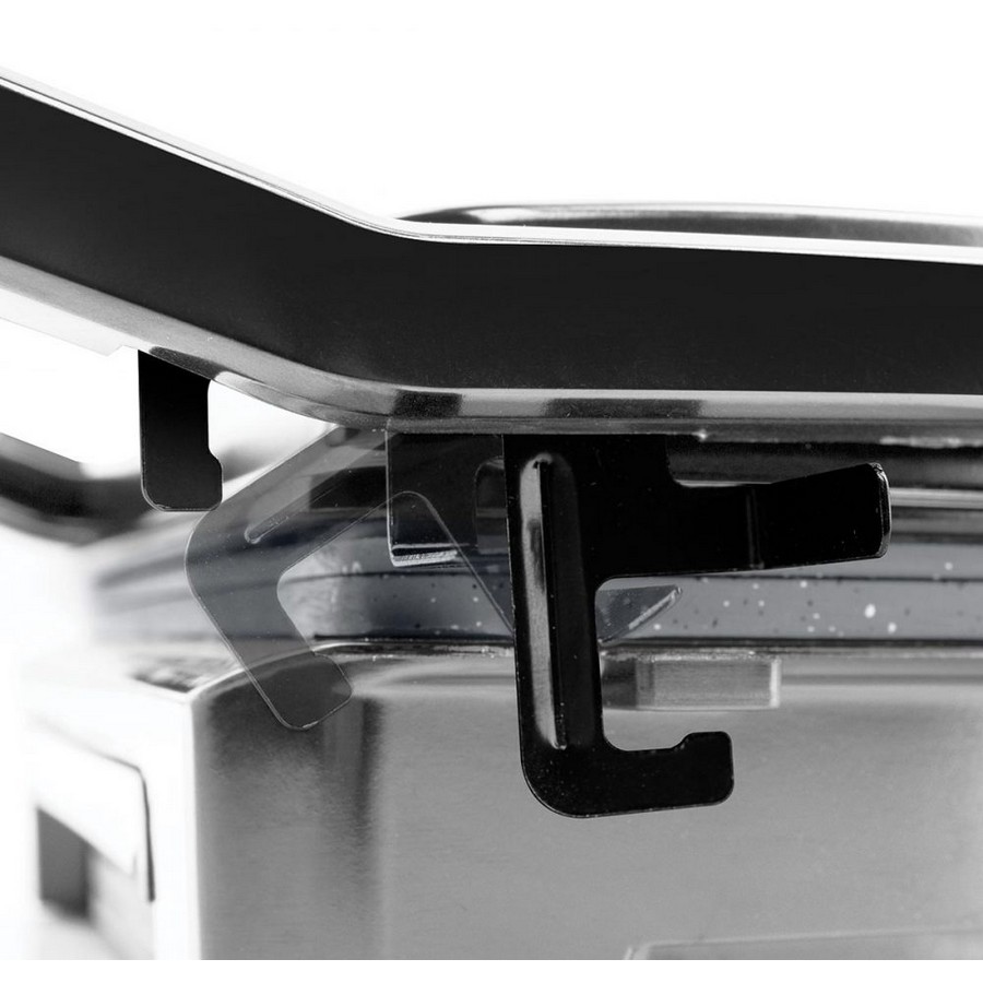Το κλιπ κλειδώματος στον πλαϊνό βραχίονα δίνει τη δυνατότητα στην τοστιέρα να μεταφέρεται εύκολα καθώς και να αποθηκεύεται κάθετα. Επίσης διαθέτει δυνατότητα τύλιξης καλωδίου στο κάτω μέρος για να εξοικονομείται χώρος στην κουζίνας και να διατηρείται τακτοποιημένη.