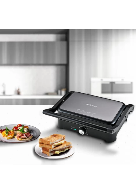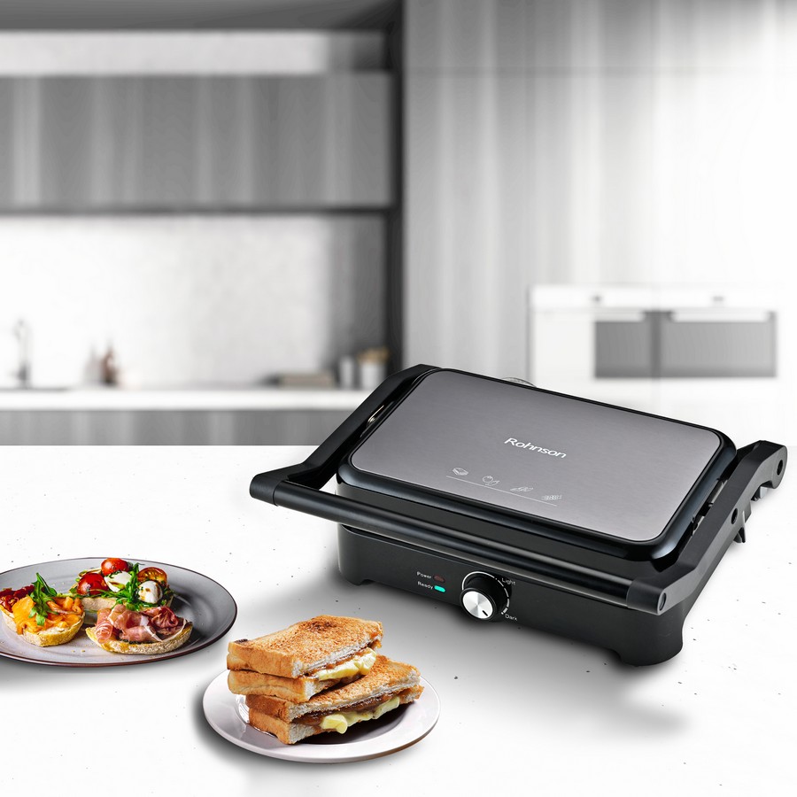 Η νέα τοστιέρα της Rohnson, R-2116 1500W, με κομψό σχεδιασμό, αντικολλητικές πλάκες τύπου grill, με μαρμάρινη επίστρωση και χωρίς PFAs, με θερμοστάτη και αποσπώμενο λιποσυλλέκτη, εξασφαλίζει υγιεινό ψήσιμο, με λιγότερα λιπαρά. Με XL επιφάνεια ψησίματος 27.8x17cm PFAs free και δυνατότητα ανοίγματος 180 μοιρών, διπλασιάζει την επιφάνειά της, ώστε να χρησιμοποιείται όχι μόνο για την παρασκευή απολαυστικών σνακ αλλά και ζουμερών κρεατικών, και να καθαρίζεται χωρίς κόπο λόγω της αντικολλητικής της επίστρωσης.