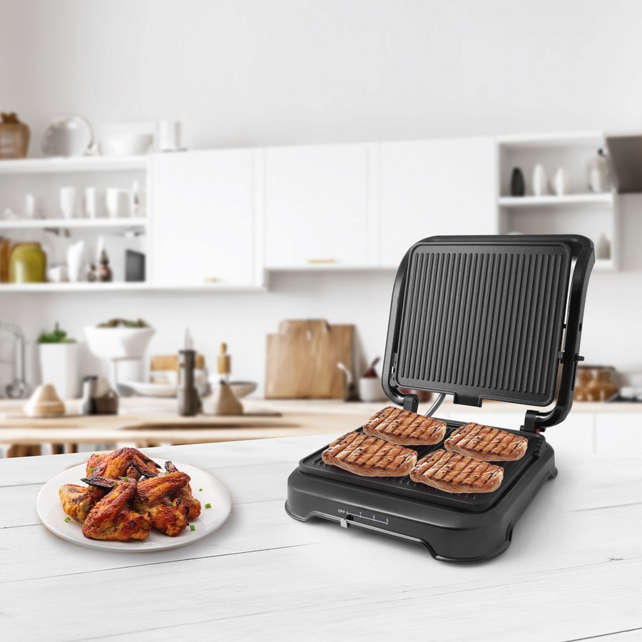 Μετατρέπεται σε ανοιχτό grill με διπλάσια επιφάνεια ψησίματος με το πάτημα ενός κουμπιού.