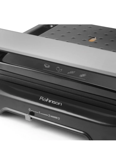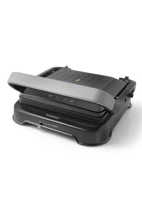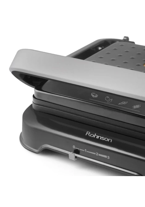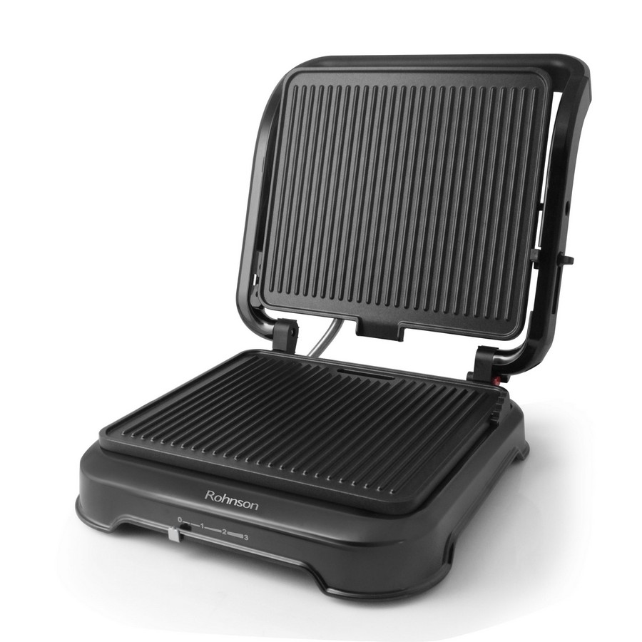 Υγιεινό και γρήγορο ψήσιμο με τη νέα γκριλιέρα R-2344. Mε XXL χυτές πλάκες 29,5×26.5cm, αντικολλητική επίστρωση χωρίς PFAs και 2200W ψήνει γρήγορα, υγιεινά, και ομοιόμορφα κρεατικά, λαχανικά, και σάντουιτς. Με άνοιγμα 180° και δίσκο υπολειμμάτων προσφέρει άνετο ψήσιμο για όλη την οικογένεια αποστραγγίζοντας τυχόν λίπη.