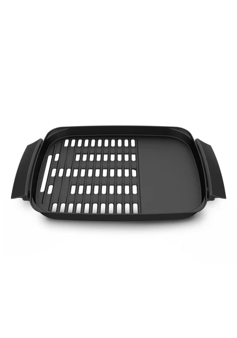 Με ταψάκι συλλογής υπολειμμάτων & επιπλέον οπές στις ραβδώσεις της πλάκας το υγιεινό ψήσιμο συναντά την απόλαυση, αφού όχι μόνο τα λίπη απομακρύνονται εύκολα και η ποσότητα νερού στο ταψάκι κατά τη διάρκεια του ψησίματος εξασφαλίζει το πιο ζουμερό και μαλακό ψήσιμο.