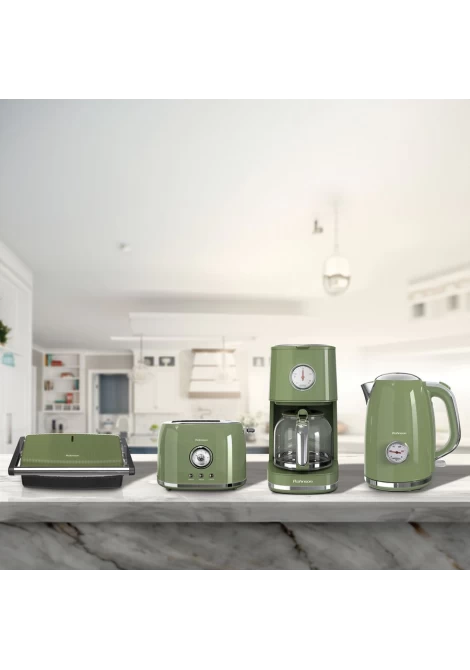 Η νέα τοστιέρα Rohnson R-2720 Nostalgia, εμπνευσμένη από την ρετρό αισθητική, συνδέει την γοητεία του παρελθόντος με την τεχνολογία του σήμερα. Είναι πανίσχυρη για γρήγορο ψήσιμο και διαθέτει XL πλάκες 27.5x18cm τύπου γκριλ, και δυνατότητα διπλασιασμού της επιφάνειάς της, με άνοιγμα 180 μοιρών, και μαρμάρινη αντικολλητική επίστρωση χωρίς PFAs για πιο υγιεινό ψήσιμο κι εύκολο καθάρισμα. Απολαύστε γρήγορα και λαχταριστά σνακ, τοστ, σάντουιτς, και ψητά λαχανικά, εύκολα, σε όλη τη διάρκεια της ημέρας. Συνδυάστε τη με τις υπόλοιπες συσκευές της σειράς Nostalgia, για ένα ολοκληρωμένο σετ πρωινού.