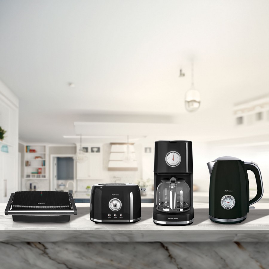 Η νέα τοστιέρα Rohnson R-2720 Nostalgia, εμπνευσμένη από την ρετρό αισθητική, συνδέει την γοητεία του παρελθόντος με την τεχνολογία του σήμερα. Είναι πανίσχυρη για γρήγορο ψήσιμο και διαθέτει XL πλάκες 27.5x18cm τύπου γκριλ, και δυνατότητα διπλασιασμού της επιφάνειάς της, με άνοιγμα 180 μοιρών, και μαρμάρινη αντικολλητική επίστρωση χωρίς PFAs για πιο υγιεινό ψήσιμο κι εύκολο καθάρισμα. Απολαύστε γρήγορα και λαχταριστά σνακ, τοστ, σάντουιτς, και ψητά λαχανικά, εύκολα, σε όλη τη διάρκεια της ημέρας. Συνδυάστε τη με τις υπόλοιπες συσκευές της σειράς Nostalgia, για ένα ολοκληρωμένο σετ πρωινού.