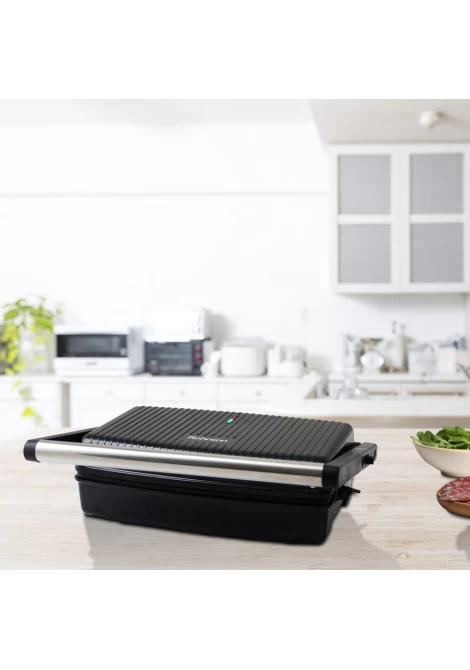Με δυνατότητα ανοίγματος 180 μοιρών, η μεγάλη διάσταση της πλάκας της διπλασιάζεται για ακόμη πιο άνετο ψήσιμο.