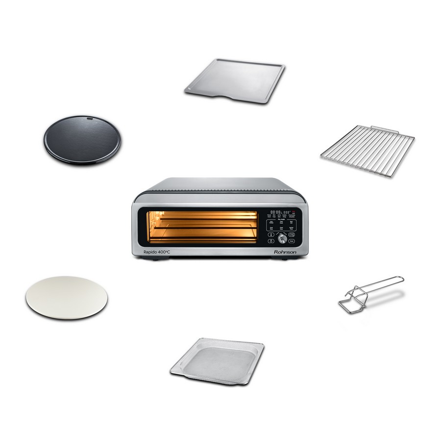 Σχάρα φούρνου, δίσκος για συλλογή λιπών, καλάθι για τηγανητά στον αέρα, δίσκος από μαντέμι, πέτρα πίτσας, λαβή.