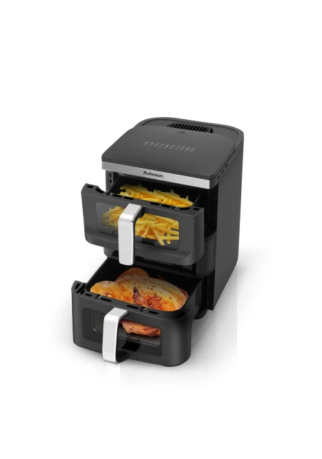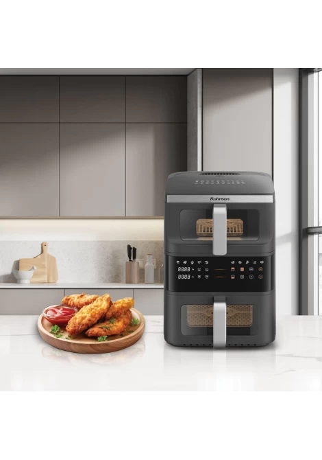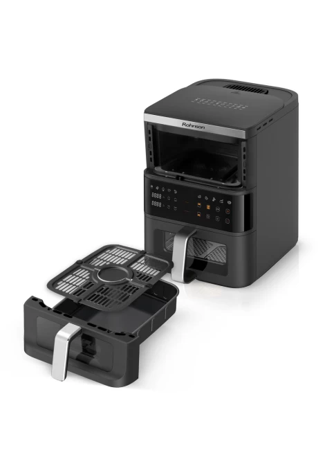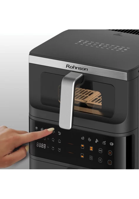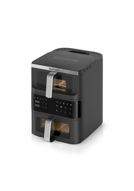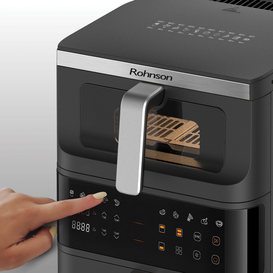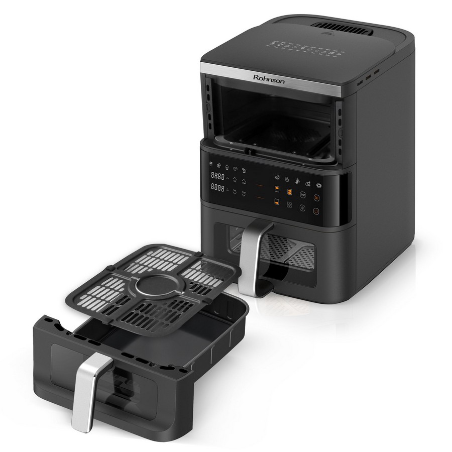 Η Rohnson R-2892 Double Stack είναι η νέα γενιά φριτέζας αέρος με χωρητικότητα 10 λίτρων, σχεδιασμένη για να συνδυάζει την άνεση με την καινοτομία. Με κομψή εμφάνιση, μοντέρνα κάθετη διάταξη και πλήρη ψηφιακό έλεγχο, μετατρέπει το καθημερινό μαγείρεμα σε μια εύκολη και απολαυστική εμπειρία.
