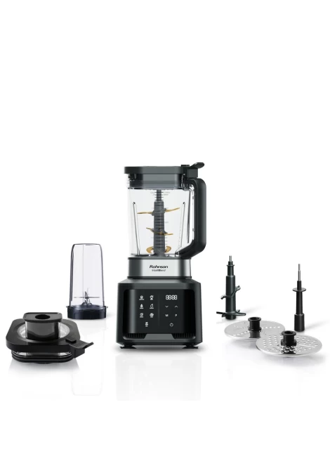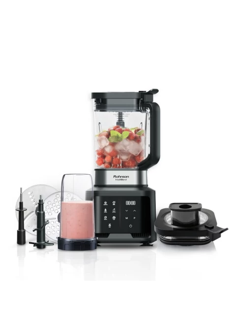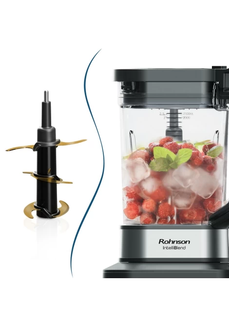 Το νέο Rohnson IntelliBlend R-5349 είναι η ιδανική 3 σε 1 συσκευή για τέλεια επεξεργασία πολλών διαφορετικών υλικών από φυλλώδη λαχανικά μέχρι σάλτσες και ζύμες με την δύναμη των 2000W. Διαθέτει 3 διαφορετικά εξαρτήματα επεξεργασίας: μεγάλη κανάτα blender 2,1L BPA free, to-go κύπελλο 600ml BPA free με καπάκι, 2 food processor δίσκους και ειδική τεχνολογία αναγνώρισης τους, με 7 διαφορετικές ρυθμίσεις που αναγνωρίζονται αυτόματα. Οι λεπίδες είναι κατάλληλες για πλύσιμο στο πλυντήριο πιάτων. Περιλαμβάνονται επίσης: εξαπλή λεπίδα με επικάλυψη τιτανίου, τετραπλή λεπίδα ζύμης, και 2 καπάκια ασφαλείας.