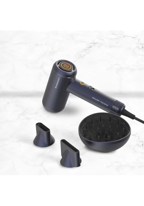 Διαθέτει ελαφρύ και ισχυρό ψηφιακό BLDC μοτέρ ισχύος 1800W με ταχύτητα 110.000 RPM, το οποίο το καθιστά 7 φορές πιο δυνατό από ένα συμβατικό σεσουάρ, καθώς και ψηφιακή τεχνολογία που βελτιστοποιεί την απόδοση και επεκτείνει τη διάρκεια ζωής του κατά 3 φορές. Με τον εργονομικό, καινοτόμο και έξυπνο σχεδιασμό του, εμποδίζει τα μαλλιά να παγιδευτούν στο φίλτρο από την αναρρόφηση αέρα του κινητήρα.