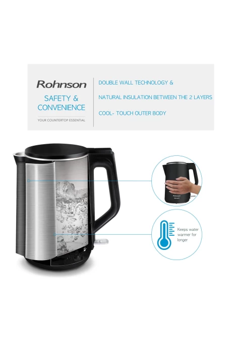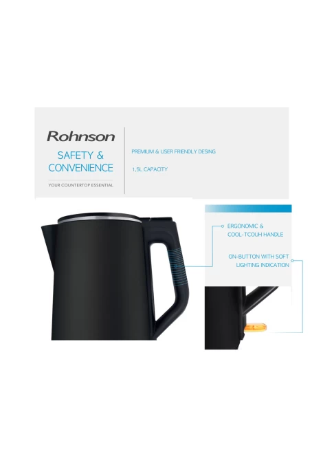Νέος βραστήρας Rohnson R-7528 «Safe touch». Με τεχνολογία διπλού τοιχώματος, minimal σχεδιασμό, και χωρητικότητα 1.5L είναι απόλυτα πρακτικός κάθε στιγμή.