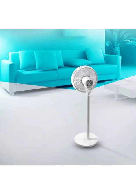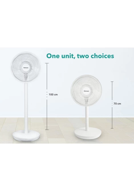 Το ύψος ρυθμίζεται σε 70 εκ. ή 100 εκ. για την παροχή δροσερού αέρα στα επιθυμητά σημεία. Διαθέτει κυκλική βάση για μεγάλη σταθερότητα. Συναρμολογείται και αποσυναρμολογείται γρήγορα για εύκολο καθαρισμό και αποθήκευση. Τα πτερύγια προστατεύονται από ειδικό πλέγμα, παρέχοντας ασφάλεια κατά τη χρήση και αποτρέποντας οποιοδήποτε ατύχημα. Έτσι αποκλείεται τυχαία πρόσβαση στις φτερωτές του ανεμιστήρα, ειδικά από παιδιά.