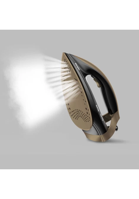 Το σύστημα συνεχούς ατμοποίησης σε συνδυασμό με την τεχνολογία boiler εξασφαλίζει γρήγορη προθέρμανση και υψηλή πίεση 10 bar. Με πανίσχυρη και σταθερή εκπομπή ατμού 270gr/min, εισχωρεί σε βάθος στις ταλαιπωρημένες από το πλύσιμο ίνες των ρούχων και τις επαναφέρει στην αρχική τους κατάσταση, με ένα μόνο πέρασμα.