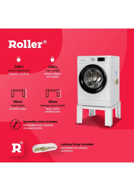 Roller 00803 Υψηλή Λευκή Βάση Στήριξης Πλυντηρίου 30cm