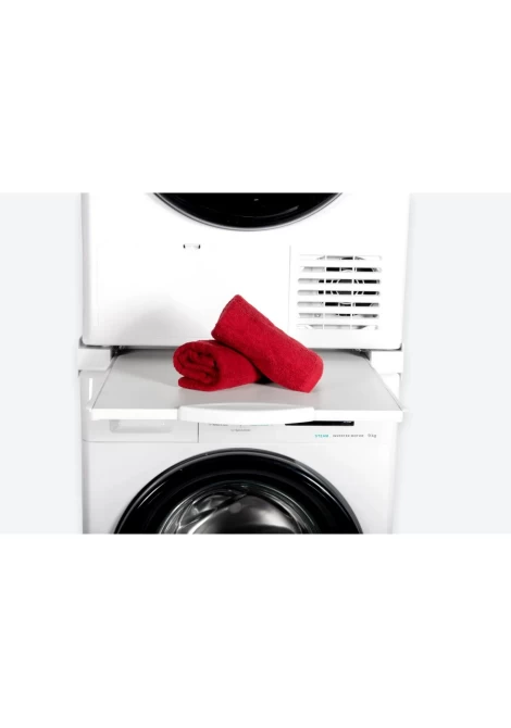 Κατάλληλο για πλυντήρια και στεγνωτήρια 60×60 cm, με διαφορά βάθους έως 15 cm. Ιδανικό για μικρούς χώρους και για χρήστες που αναζητούν λύσεις χωρίς περιττές διαδικασίες. Χάρη στις ενσωματωμένες υποδοχές, το στεγνωτήριο τοποθετείται σταθερά χωρίς την ανάγκη αφαίρεσης των ποδιών του. Δεν είναι κατάλληλο για συσκευές με διαφορά βάθους μεγαλύτερη των 15 cm.