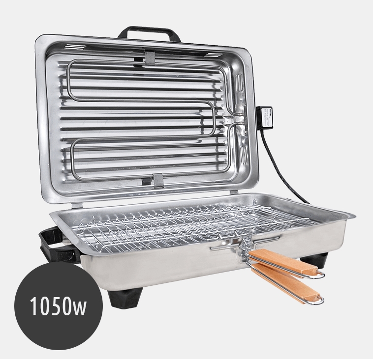 Roller Ψηστιέρα Ορθογώνια 1050w Μεγάλη Inox με Σχάρα Χρωμίου (20106)