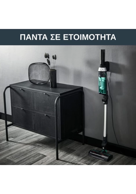 Μια πολυχρηστική λύση σκουπίσματος που υπόσχεται πλήρη αποτελεσματικότητα από το δάπεδο μέχρι την οροφή, με σκούπα stick και ηλεκτρικό σκουπάκι χειρός σε μία συσκευή.