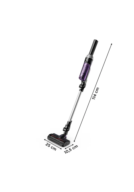 Λύση πολλαπλών χρήσεων εξοπλισμένη με αφαιρούμενη ηλεκτρική σκούπα, κατάλληλη τόσο για τον καθαρισμό δαπέδων και χαλιών, όσο και για τον καθαρισμό επιφανειών. Χάρη στα αξεσουάρ που περιλαμβάνονται (ενσωματωμένες βούρτσες, εργαλείο σχισμής, βούρτσα καναπέ) θα μπορείτε να καθαρίσετε ακόμη και ευαίσθητες επιφάνειες, υφάσματα και τις πιο δύσκολες γωνίες. Ιδανικό για τον καθαρισμό του σπιτιού από πάνω προς τα κάτω.
