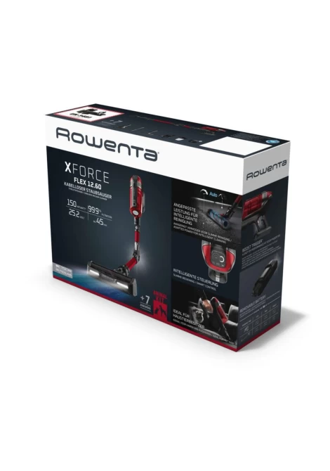 Η επαναφορτιζόμενη σκούπα stick Rowenta XForce Flex 12.60 προσφέρει μια εντελώς νέα εμπειρία σκουπίσματος, συνδυάζοντας την εξαιρετική απόδοση με την απόλυτη ευελιξία. Η μεγάλη ισχύς απορρόφησης των 150 Air Watt* εξασφαλίζει αποδοτικό σκούπισμα σε καθημερινή βάση και η slide-in μπαταρία προσφέρει εντυπωσιακή αυτονομία για 45 λεπτά**. Ανακαλύψτε μια μοναδική εμπειρία σκουπίσματος που γίνεται ακόμη καλύτερη χάρη στις τεχνολογίες που αποτελούν σήμα κατατεθέν της Rowenta: Τεχνολογία Flex που σας επιτρέπει να σκουπίζετε 4 φορές πιο μακριά*** κάτω από χαμηλά έπιπλα, χωρίς να σκύβετε, έξυπνη οθόνη ελέγχου σε πραγματικό χρόνο, αυτόματη προσαρμογή της ισχύος απορρόφησης ανάλογα με τον τύπο του δαπέδου και πολλά ακόμα.