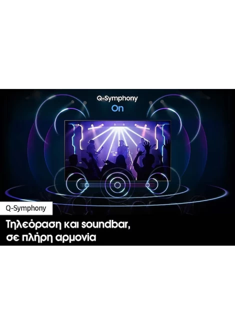 Βυθιστείτε σε μια εναρμονισμένη εμπειρία ήχου από την τηλεόραση και το soundbar. Η τεχνολογία Q-Symphony επιτρέπει την ταυτόχρονη λειτουργία της τηλεόρασης και των soundbar, χωρίς σίγαση των ηχείων της τηλεόρασης για εντονότερο εφέ ήχου surround.