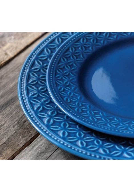 Πιάτο ρηχό, από υψηλής ποιότητας ανάγλυφη πορσελάνη σε μπλε χρώμα