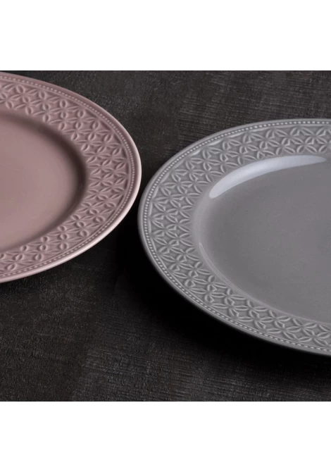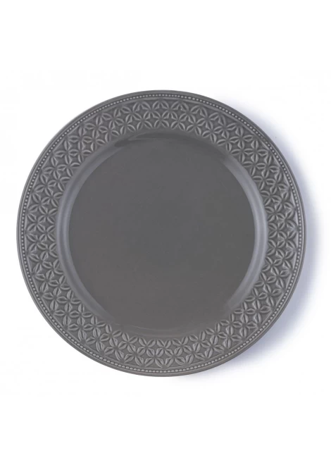 Πιατέλα στρογγυλή, από υψηλής ποιότητας ανάγλυφη πορσελάνη σε γκρι χρώμα
