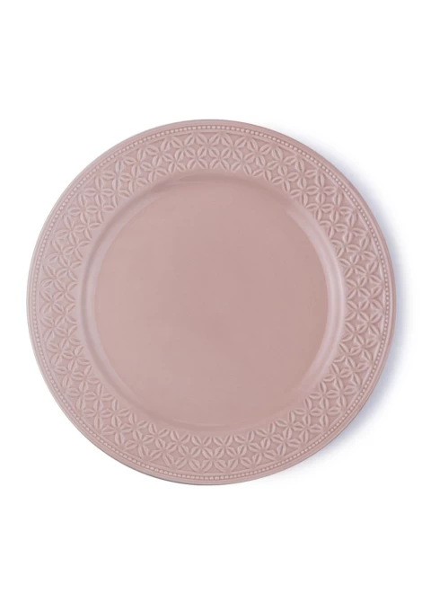 Πιατέλα στρογγυλή, από υψηλής ποιότητας ανάγλυφη πορσελάνη σε ροζ χρώμα