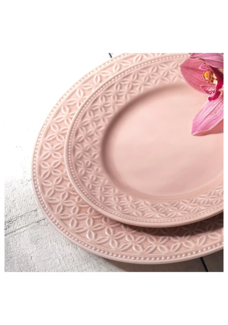 Πιάτο βαθύ, από υψηλής ποιότητας ανάγλυφη πορσελάνη σε ροζ χρώμα