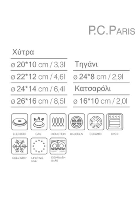 • Κάθε σκεύος από τη σειρά P.C.PARIS είναι κατασκευασμένο από ανοξείδωτο ατσάλι 18/10 υψηλής ποιότητας, υλικό εξαιρετικά ανθεκτικό και υγιεινό.