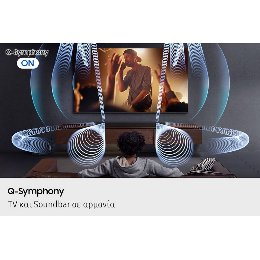 Με το Q-Symphony, το AI διαχωρίζει τις φωνές και τους ήχους και τους αναπαράγει στα εκάστοτε κανάλια ήχου. Έτσι απολαμβάνετε καθαρούς διαλόγους και καθηλωτικό τρισδιάστατο surround ήχο από τα ηχεία της συμβατής τηλεόρασης και το soundbar, σε αρμονία.