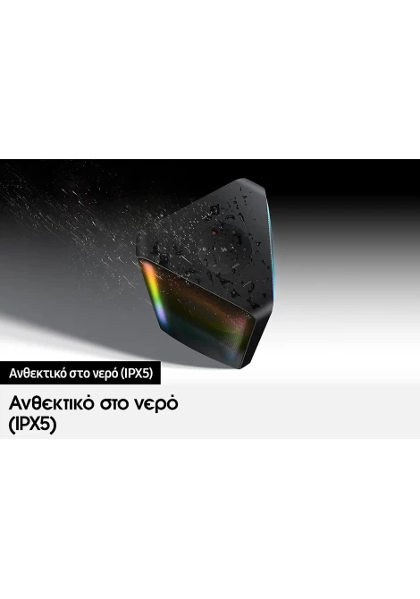 Με πιστοποίηση IPX5, το Sound Tower είναι ανθεκτικό σε διάφορες καιρικές συνθήκες, διαθέτοντας προστασία από το νερό.