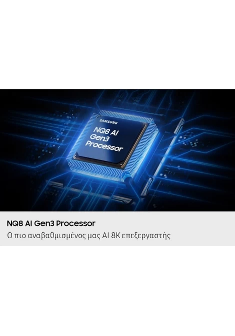Απολαύστε ποιότητα, με τον πιο αναβαθμισμένο ΑΙ επεξεργαστή της Samsung μέχρι σήμερα. Με 768 νευρωνικά δίκτυα AI, ο επεξεργαστής ενισχύει ακόμη περισσότερο* εικόνα και ήχο. Όποιο περιεχόμενο και αν παρακολουθείτε, απολαύστε το με τις εκπληκτικές δυνατότητες μίας τηλεόρασης 8Κ.
