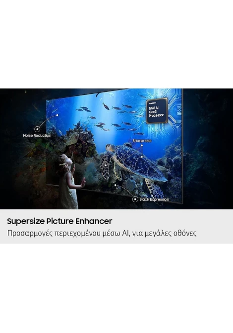 Παρακολουθήστε το αγαπημένο σας περιεχόμενο με εκπληκτική λεπτομέρεια. Ο επεξεργαστής ΑΙ προσαρμόζει το περιεχόμενο, φτάνοντάς το σε ανάλυση έως 8Κ με 768 νευρωνικά δίκτυα ΑΙ, παρέχοντας την πιο καθαρή και κρυστάλλινη ποιότητα εικόνας σε τηλεόραση Samsung.