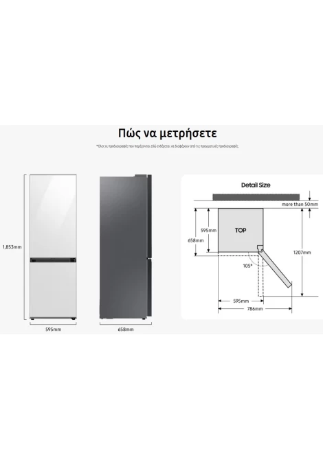 *Μονόπορτο μοντέλο: RR7000. Ο συνδυασμός με μονόπορτα ψυγεία είναι διαθέσιμος μόνο στο RB34A** με ύψος 1853Mm. ** Μοντέλο Ψυγειοκαταψύκτη: RB7300. ***Αν θέλετε να εγκαταστήσετε 2 μοντέλα, ελέγξτε εάν τα μοντέλα που θέλετε επιτρέπουν την εγκατάσταση μεταξύ τους πριν την αγορά. Μπορείτε να το ελέγξετε αυτό στο κατάστημα λιανικής πώλησης ή στην ιστοσελίδα της Samsung.com.