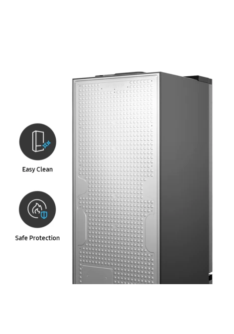Καθαρίστε το πίσω μέρος του ψυγείου σας πολύ εύκολα. Το καθαρό πίσω μέρος (Clean back) είναι ένα απόλυτα ομαλό κάλυμμα ασφαλείας για τα απαραίτητα πηνία και καλώδια. Φαίνεται πολύ τακτοποιημένο, μπορεί να καθαριστεί εύκολα και να προσφέρει αντοχή. Δεν αφήνει τους ρύπους να συγκεντρωθούν γύρω από τα στοιχεία και τα προστατεύει από χτυπήματα.