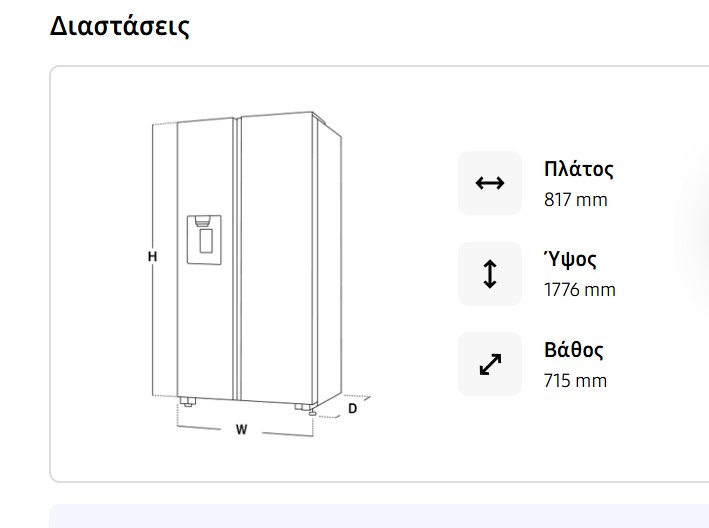 Καθαρό βάθος με τη χειρολαβή της πόρτας (χιλιοστά) 715 mm