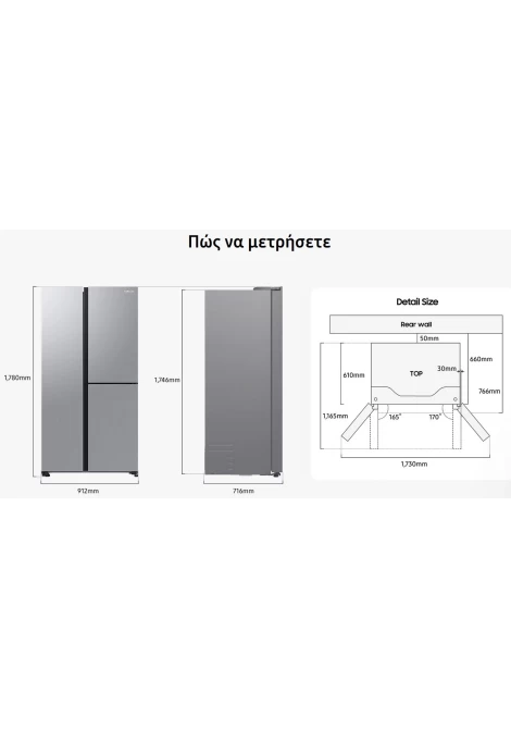 *Σε σύγκριση με ψυγείο Samsung χωρίς Επίπεδη πλάτη.