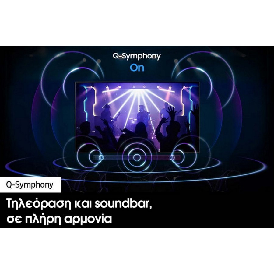 Βυθιστείτε σε μια εναρμονισμένη εμπειρία ήχου από την τηλεόραση και το soundbar. Η τεχνολογία Q-Symphony επιτρέπει την ταυτόχρονη λειτουργία της τηλεόρασης και των soundbar, χωρίς σίγαση των ηχείων της τηλεόρασης για εντονότερο εφέ ήχου surround.