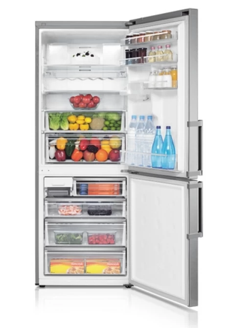 Βασικός του σκοπός να προσφέρει περισσότερο χώρο για τα τρόφιμα σας: Ο απλός σχεδιασμός των εσωτερικών τοιχωμάτων που προσφέρει η Samsung επεκτείνει τη δυνατότητα αποθήκευσης με στρατηγικά τοποθετημένες διατάξεις πολλαπλής ροής αέρα και φωτιστικά LED που δεν πιάνουν άσκοπα χώρο. Παράλληλα, η εμφάνιση του εσωτερικού είναι κομψή και εκλεπτυσμένη.