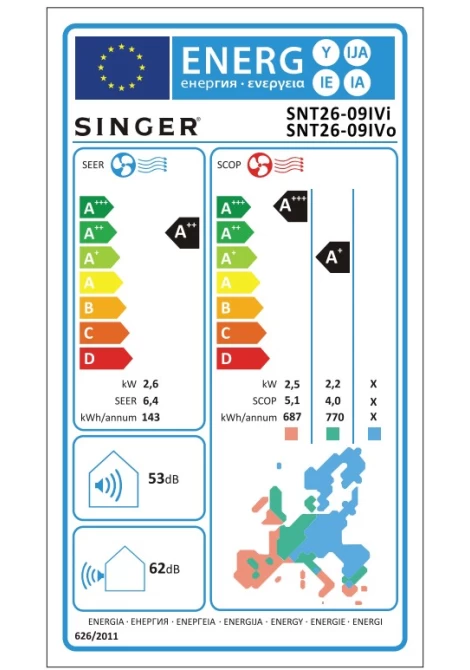 Singer SNT26-09IVi/SNT26-09IVο Inverter Κλιματιστικό Τοίχου
