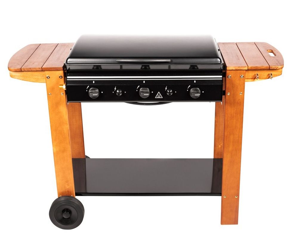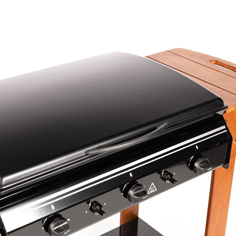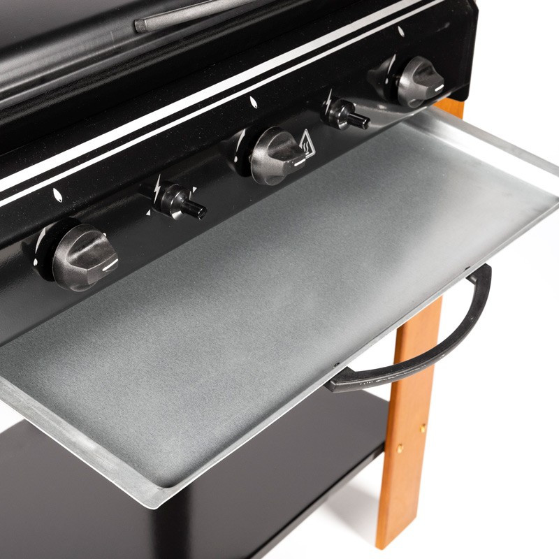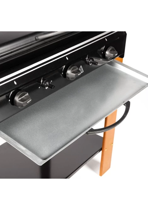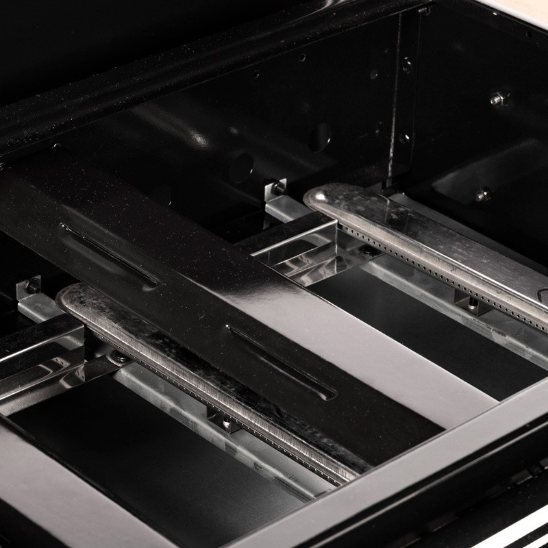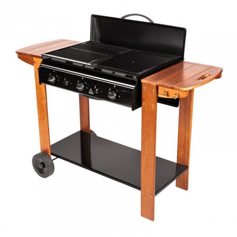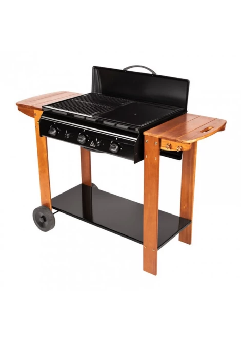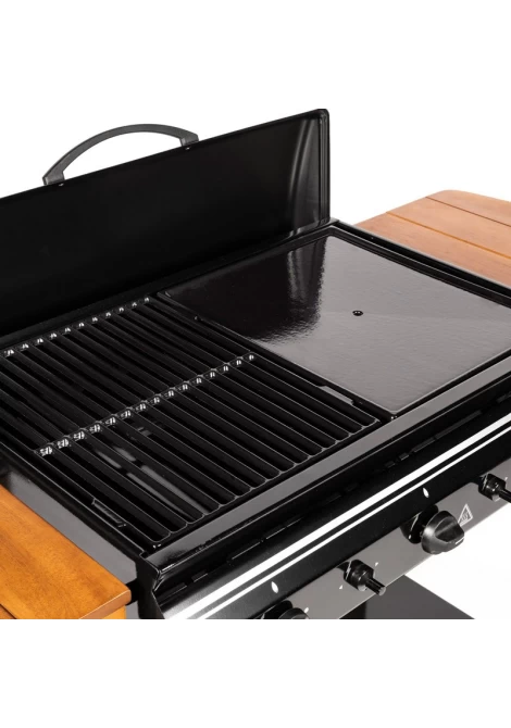 Διαθέτει 3 ανεξάρτητους καυστήρες καθώς και μαντεμένια σχάρα και πλάκα ψησίματος.