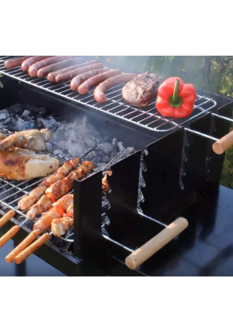 Μεταλλική εμαγιέ ψησταριά με 2 ξεχωριστές σχάρες με ρυθμιζόμενο ύψος για 20 άτομα.