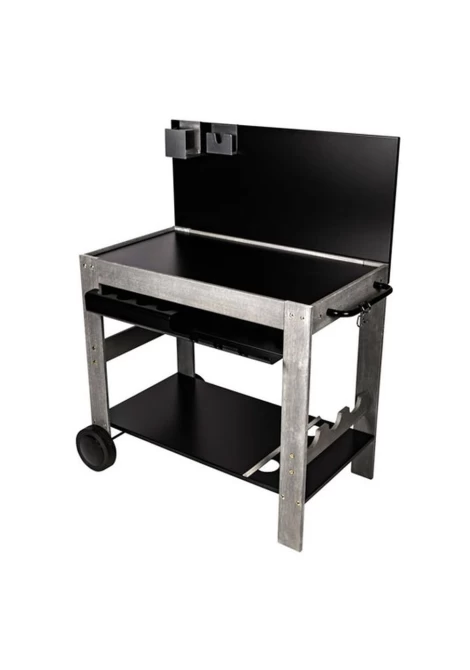 Τραπέζι για ψησταριά Plancha/Griddle ξύλινο τροχήλατο με αντιανεμική πλάτη, συρτάρι και ράφι αποθήκευσης καθώς και θήκες για μπουκάλια και αξεσουάρ.