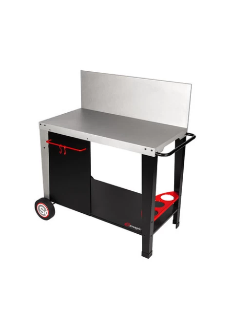 Τραπέζι για ψησταριά Plancha/Griddle μεταλλικό τροχήλατο με πλάτη, ράφι αποθήκευσης και θήκες για μπουκάλια.