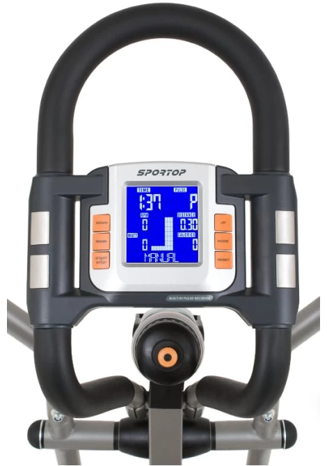 Το Ελλειπτικό Sportop E850P αποπνέει σύγχρονη αισθητική και εγγυάται κατασκευή κορυφαίας ποιότητας, με στιβαρό χαλύβδινο πλαίσιο που αντανακλάται στη σταθερή και ομαλή κίνηση του μηχανήματος. Προσφέρει δυναμικά προγράμματα προπόνησης, 16 επίπεδα αντίστασης και μία άνετη εργονομική θέση άσκησης για όλους τους χρήστες χάρη στη δυνατότητα ρύθμισης των πεντάλ σε 3 θέσεις.