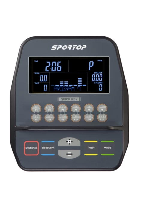 - Το καθιστό ποδήλατο γυμναστικής Sportop R60 είναι εξοπλισμένο με 9 κιλών, εξαιρετικά ομαλό και συμπαγή δίσκο, που σας δίνει την αίσθηση πραγματικής αντίστασης. Σε αντίθεση με άλλα καθιστά ποδήλατα, το R60 έχει μία ρυθμιζόμενη γωνία προβολής, με αποτέλεσμα να μπορείτε να διατηρείτε τη θέση σας κατά την προπόνηση, τη στιγμή που η 6" οθόνη LCD με μπλε οπίσθιο φωτισμό σας ενημερώνει για όλα τα δεδομένα της άσκησης. Τέλος, αυτό το καθιστό ποδήλατο είναι φιλικό προς το σώμα, καθώς προκαλεί μηδαμινούς κραδασμούς στις αρθρώσεις σας.