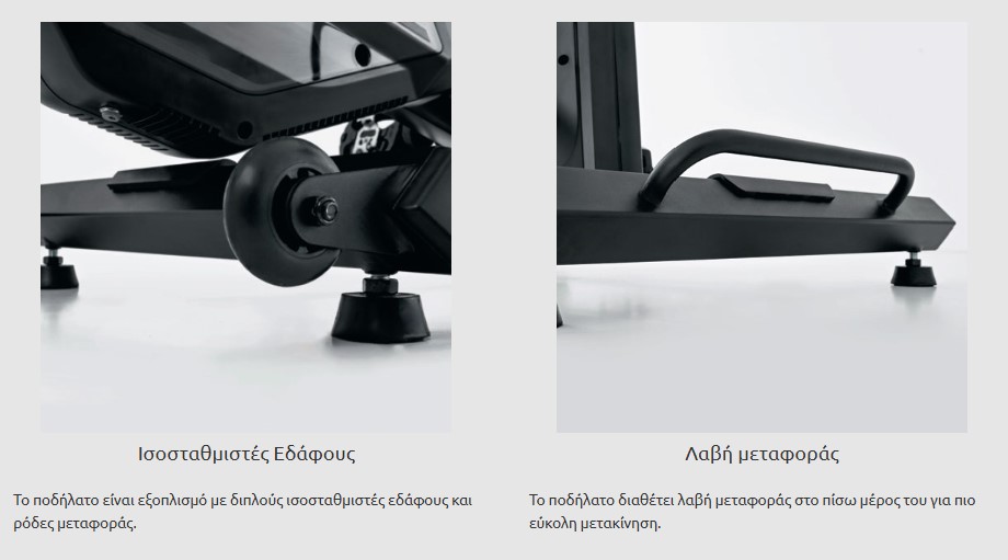 | Σύστημα πέδησης με αντίσταση | Εργομετρική με μαγνητική επαγωγή διπλού πηνίου και με ηλεκτρονική ρύθμιση |